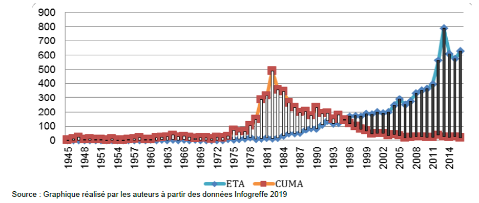Figure 1. Change in the number of ETA and CUMA creations. Infogreffe 2019 data. Source: Nguyen et al.,